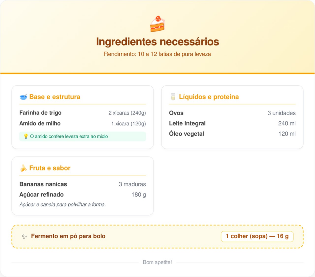 Quais ingredientes garantem a leveza do bolo de banana?