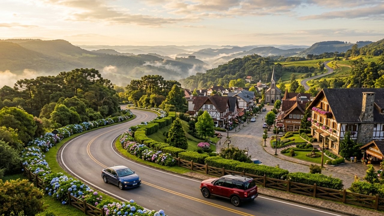 A soma entre cidades germânicas, jardins bem cuidados e paisagens de serra transforma esse trecho do Rio Grande do Sul em um dos roteiros mais procurados do turismo nacional. Poucos destinos brasileiros reúnem clima frio, gastronomia europeia e tantos mirantes em um único aluguel de carro.