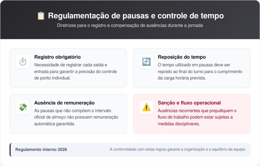 Para os brasileiros que trabalham em empresas com sede na Europa ou em multinacionais que seguem padrões rígidos, a atenção aos intervalos deve ser redobrada. O descumprimento da reposição do tempo pode ser interpretado como falta de assiduidade, gerando sanções que vão de advertências até a demissão.