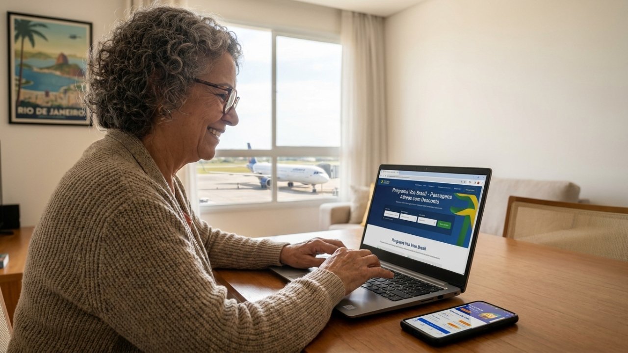 O programa Voa Brasil permite que aposentados comprem passagens aéreas por até R$ 200 o trecho em voos domésticos. A iniciativa foca em democratizar o acesso ao transporte aéreo utilizando assentos ociosos das companhias brasileiras.