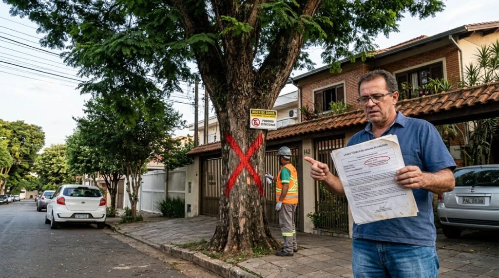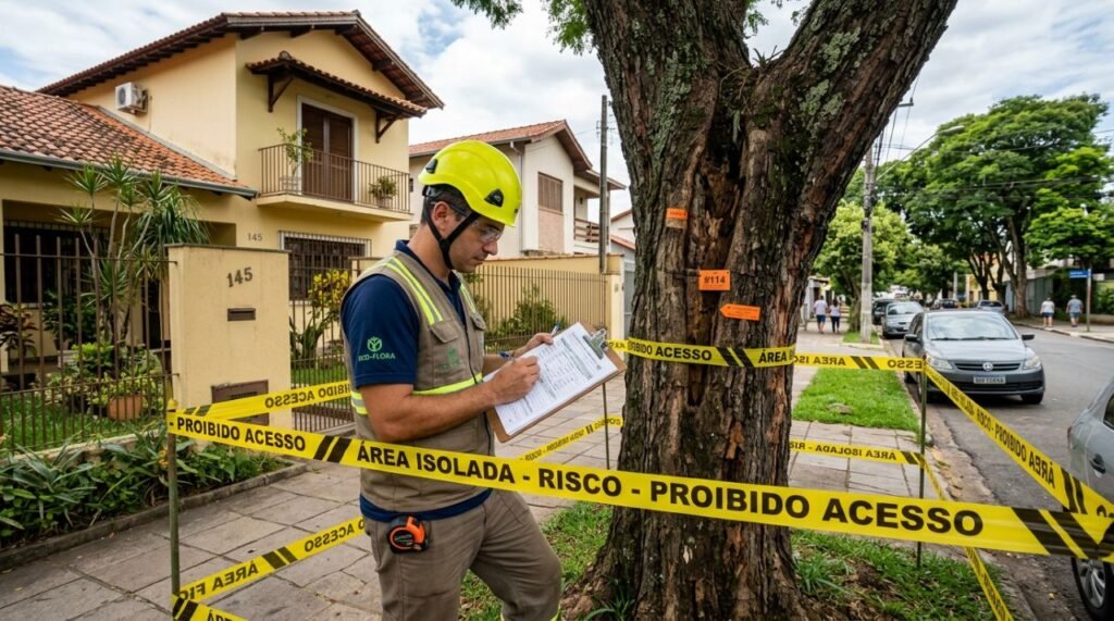 Quando a árvore representa risco iminente, como inclinação após vendaval ou galho comprometido sobre área habitada, o laudo técnico tem prioridade absoluta. Ele é ao mesmo tempo a proteção legal do proprietário e o documento que viabiliza a ação dentro dos limites da lei.