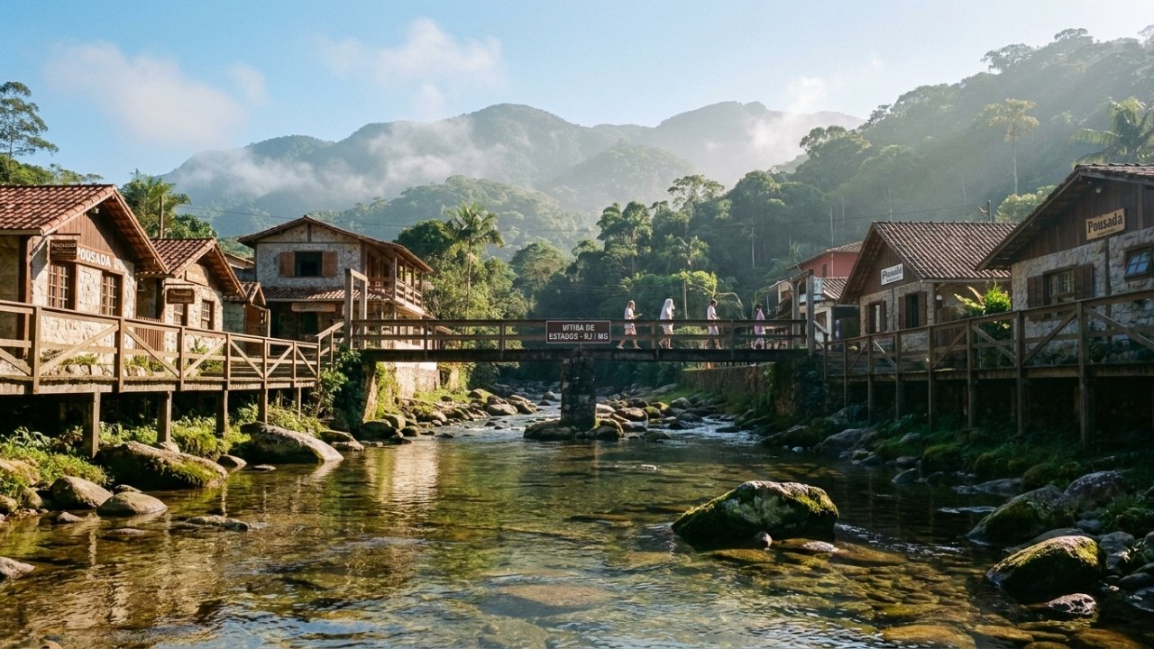 Visconde de Mauá desmente em poucos quilômetros a ideia de que o estado do Rio é só litoral. É o raro caso brasileiro em que três vilas partilham o mesmo rio como divisa entre estados e entregam um frio serrano a pouco mais de três horas da capital fluminense.