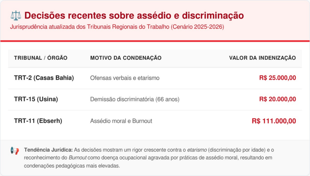 Sim. O caso da auxiliar de limpeza não é isolado. Em 2025, diversos tribunais regionais e o próprio TST confirmaram condenações similares. A tendência do Judiciário é aumentar o valor das indenizações para que tenham um caráter pedagógico, forçando as empresas a investirem em treinamentos de RH e canais de denúncia eficazes.