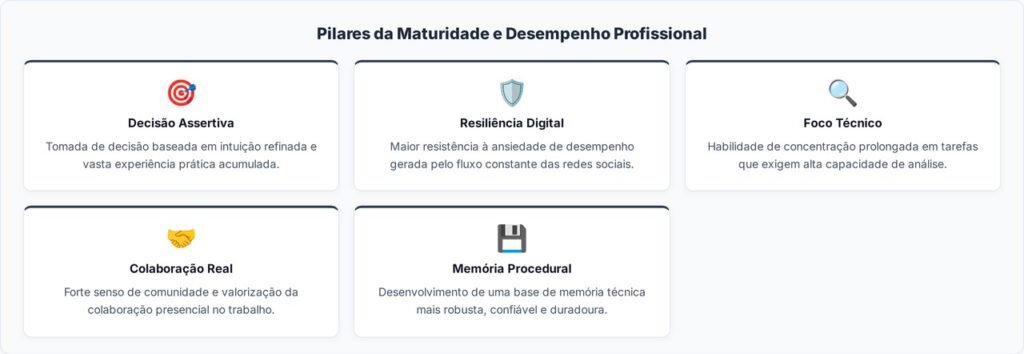 Essa estrutura cognitiva permite que o profissional maduro consiga filtrar o excesso de informação e focar apenas no que é essencial para o resultado final. Perceber o valor dessa clareza mental é o primeiro passo para integrar essas competências tradicionais às ferramentas tecnológicas atuais de forma equilibrada.