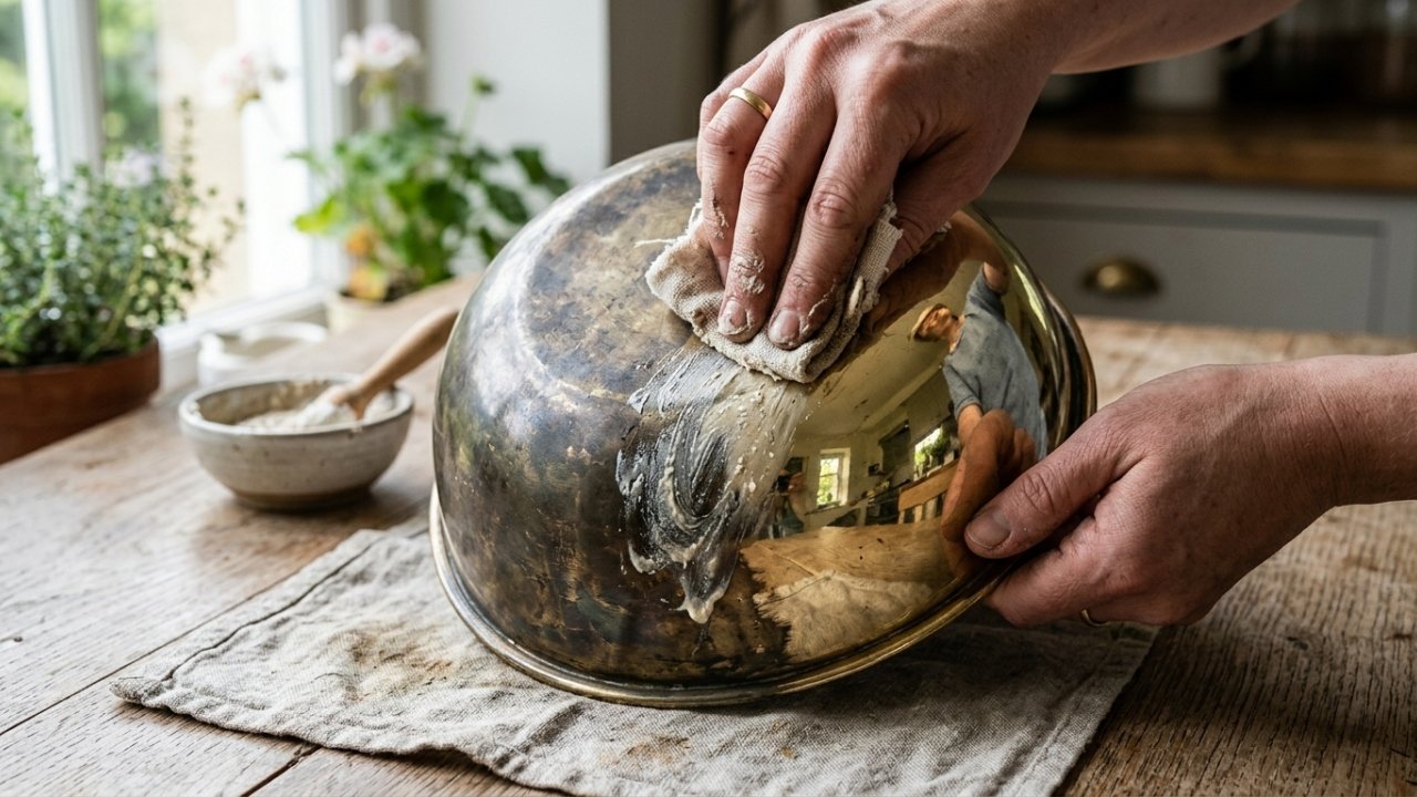 Já a farinha age como espessante, criando uma pasta que adere melhor à peça e permite que o produto aja de forma mais uniforme. Esse método é indicado para objetos decorativos, utensílios antigos e pequenos “tesouros” metálicos que perderam o brilho, desde que estejam em bom estado estrutural e sem danos profundos.