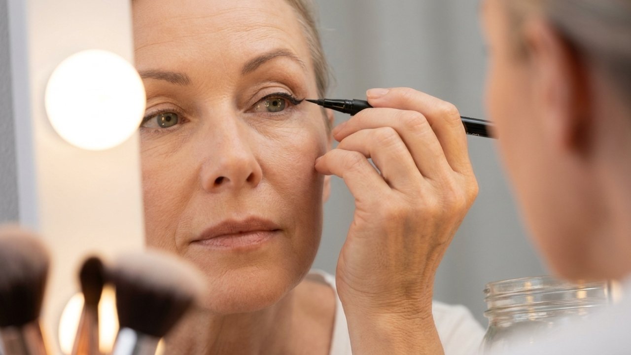 Enquanto me arrumava para um jantar, percebi que o clássico delineado para pálpebra caída precisava de um truque especial para não sumir sob a pele. Será que uma simples mudança no ângulo do pincel é suficiente para transformar sua expressão e rejuvenescer o rosto instantaneamente?