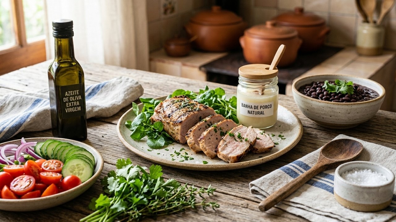 A dúvida sobre a banha de porco costuma surgir em comparação com óleos vegetais. A banha é uma gordura animal com ácidos graxos saturados e monoinsaturados, apresentando boa estabilidade em altas temperaturas, o que reduz certas alterações quando usada em aquecimento intenso.