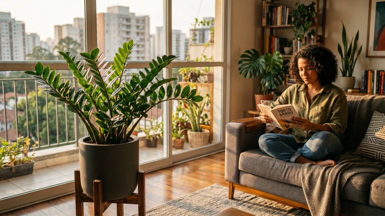 Originária das savanas da África, a zamioculca possui rizomas subterrâneos que funcionam como reservatórios biológicos de água e nutrientes. Essa estrutura permite que a espécie sobreviva por semanas sem hidratação, sendo perfeita para quem viaja com frequência ou esquece a rega.