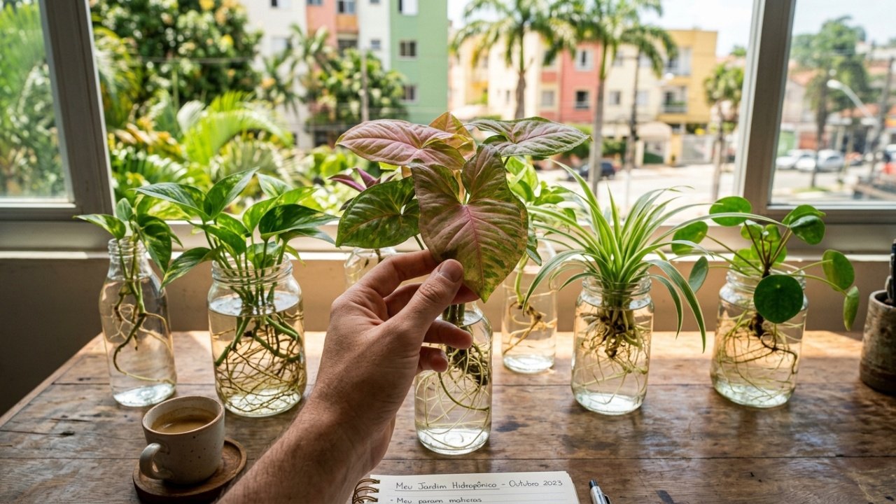Cultivar plantas de interior na água é uma forma terapêutica de trazer o verde para dentro de casa com sofisticação. Ao respeitar as trocas de água e a nutrição básica, você terá um elemento decorativo vivo que permanece bonito o ano todo, transformando qualquer prateleira em um ponto de destaque e frescor no seu lar.