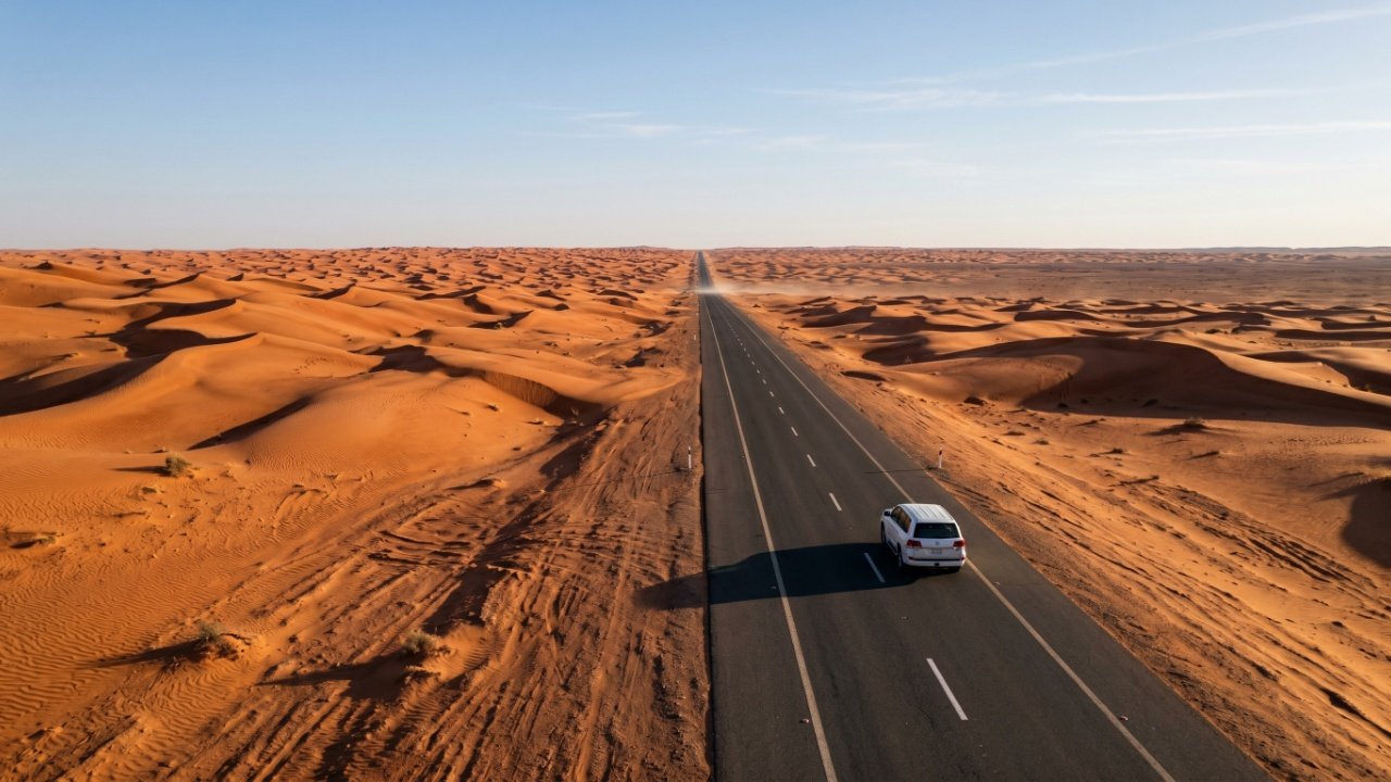 Arábia Saudita detém o recorde da estrada reta mais longa do planeta, um trecho da Highway 10 que se estende por 240 quilômetros. Esta via cruza o deserto sem apresentar uma única curva, conectando regiões estratégicas com precisão geométrica absoluta.