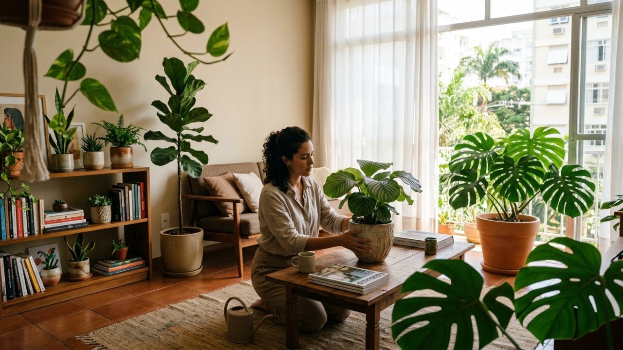 Outro fator relevante é a combinação entre umidade, ventilação e temperatura, que muda de cômodo para cômodo. A sala tende a ter ar mais seco, o banheiro concentra vapor, a cozinha passa por picos de calor e a varanda une sol, vento e variações rápidas de temperatura. Conhecer esse cenário facilita a escolha de espécies compatíveis com cada ambiente e reduz problemas como folhas queimadas ou amareladas.