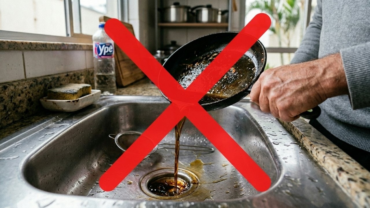 Quando o óleo de cozinha é jogado no ralo, ele não desaparece: em contato com água fria, vai se tornando mais espesso e se acumula nas paredes dos canos, grudando em restos de alimento, sabão e outras gorduras, o que favorece entupimentos constantes.