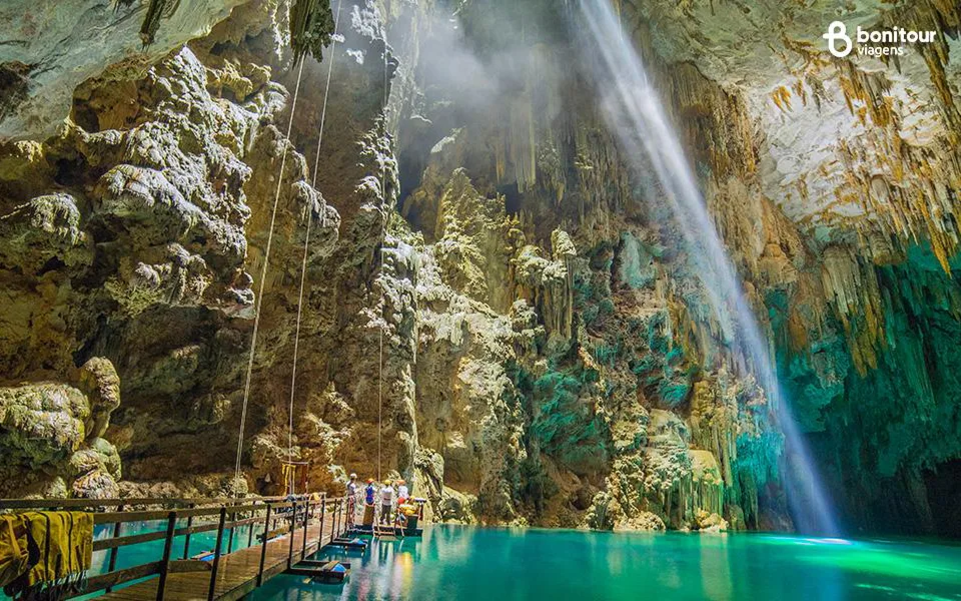 Abismo Anhumas em Bonito revela lago subterrâneo, mergulho radical e formações únicas. Descubra o santuário ecológico escondido no MS