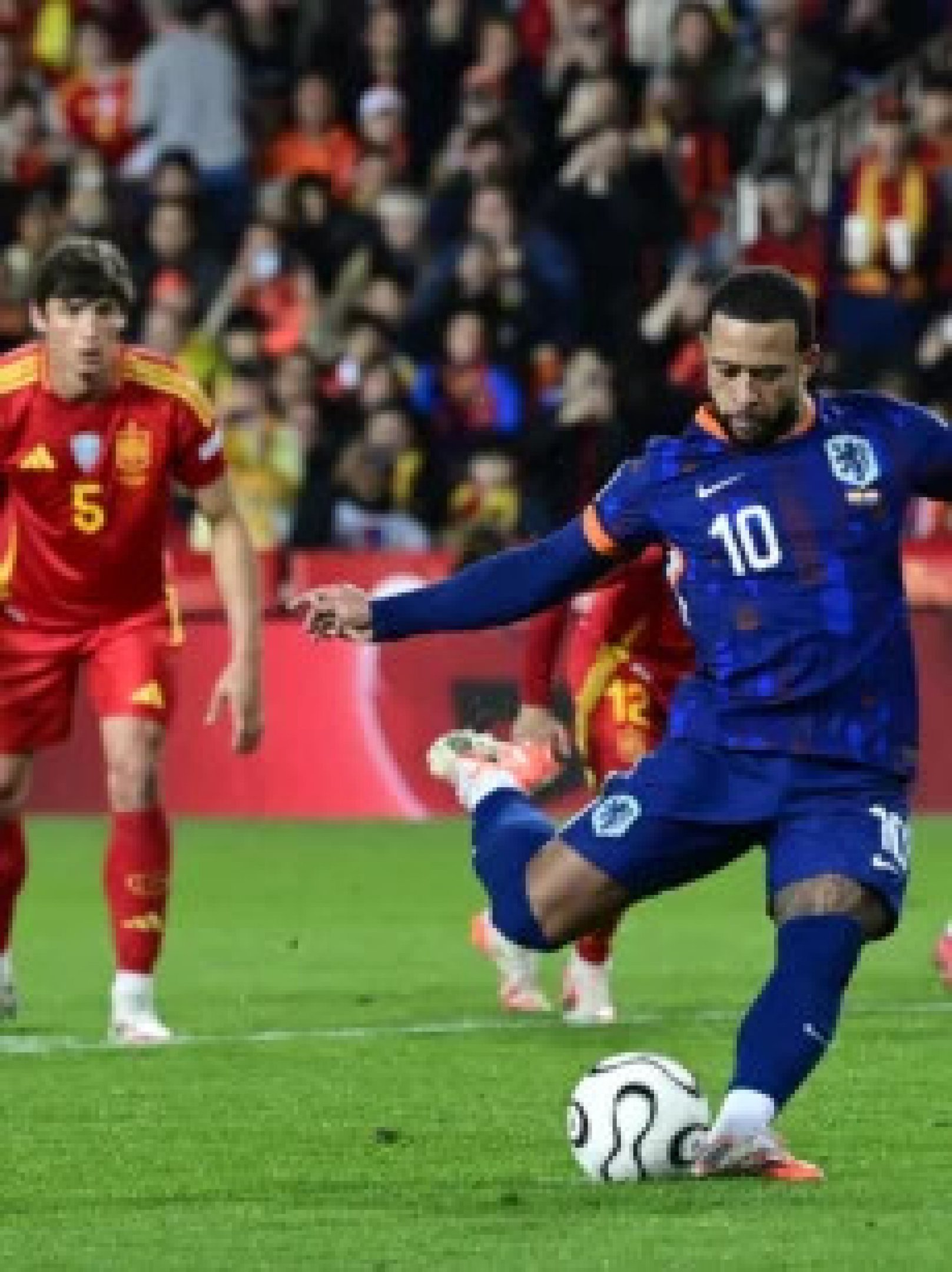 Memphis voltou dar trabalho para a Espanha aos 11 minutos. Ele conduziu pelo meio e e chutou da entrada da área, mas Unai Simón espalmou. Os espanhóis responderam aos 21 e voltaram a abrir vantagem, novamente com Oyarzabal. O atacante recebeu passe na área após uma linda jogada individual de Nico Williams e não desperdiçou a chance, abrindo 2 a 1 para La Roja.
