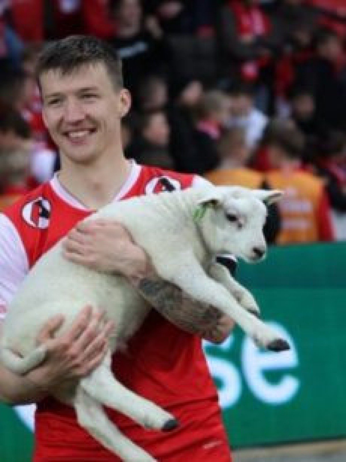 O volante norueguês Axel Kryger, do Bryne FK, foi apontado como o melhor em campo na vitória da equipe sobre o Haugesund, pela Eliteserien (Campeonato Norueguês), e ganhou um animal como prêmio.