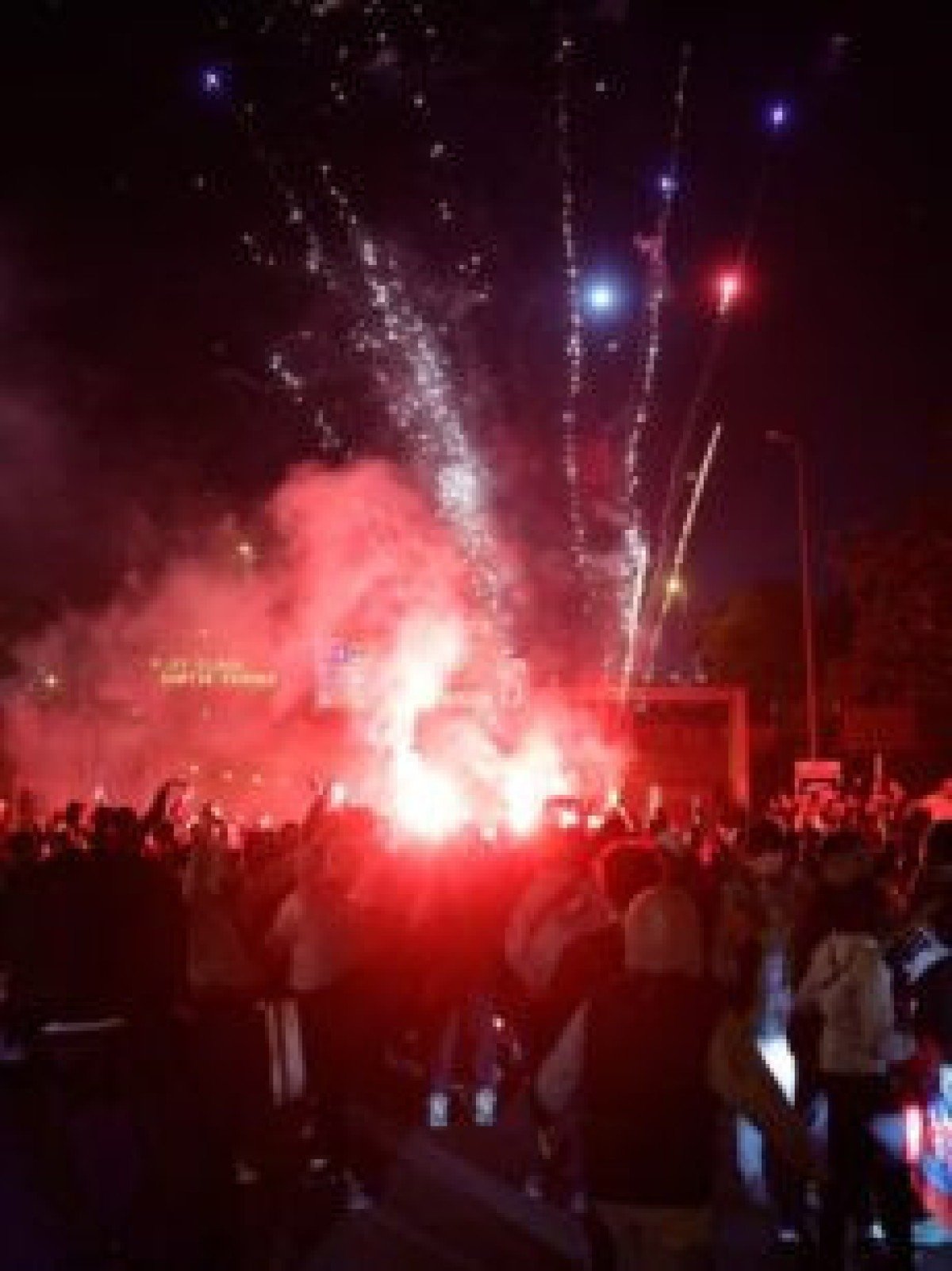 “O veículo ficou imobilizado devido à multidão de torcedores. Dois indivíduos, o motorista e um passageiro, fugiram a pé, abandonando o carro em meio à fúria dos torcedores, que foi incendiado e completamente destruído”, detalhou a prefeitura.