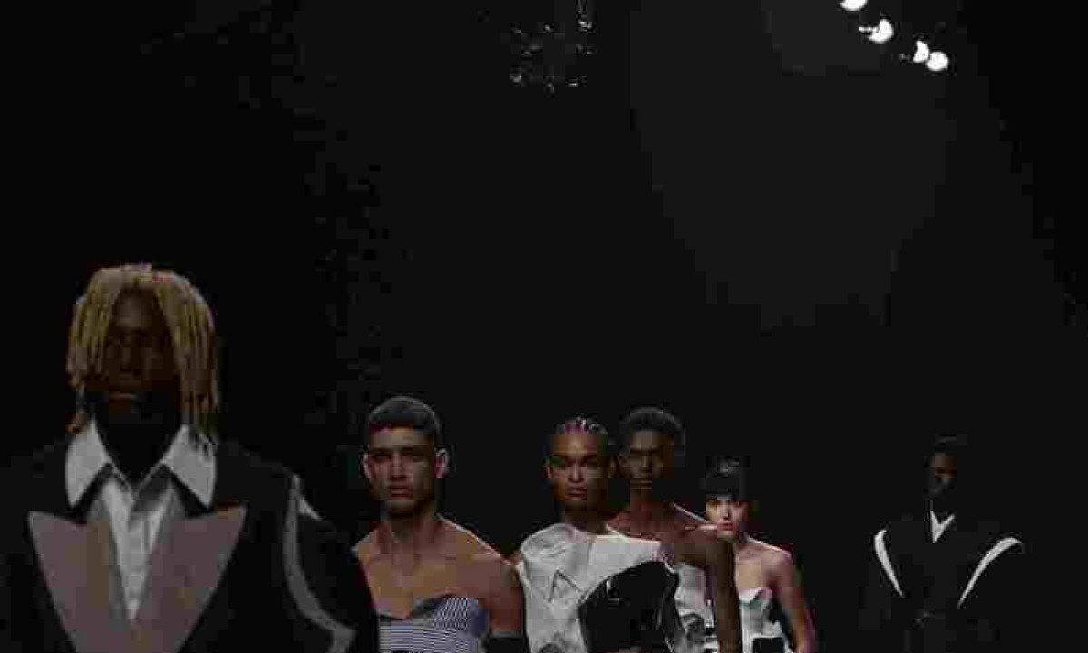Luiz Cláudio Silva, da Apartamento 03, brincou com a tonalidade azul, trazendo um pigmento africano para a coleção. “Isso me remeteu à ideia de ancestralidade, olhando tanto para trás como para a frente,” explicou. Na passarela, o azul profundo respingou no branco de peças elaboradas com franjas e volumes plissados, bastante sofisticados e de encher de alegria o olhar.
