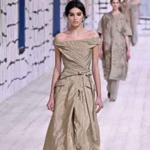 A palavra “aura” sintetiza a coleção de alta-costura. Maria Grazia Chiuri explorou a própria essência da marca, roupas que se tornam únicas para quem as usa. Tecidos rebuscados e o handmade, com bordados e aplicações, modelagens e tecidos mais casuais, como sarja de algodão. O clássico trench coat, por exemplo, deu forma a vestidos com shapes desconstruídos. O vestido La Cigale, do outono de 1952, foi o ponto de partida para a coleção de primavera/verão 2024. A ideia da estilista foi modernizar a estética. Pela primeira vez, a diretora-criativa da Dior trabalhou com o moiré, material também conhecido como seda aguada. O resultado pode ser visto em peças de sobreposição, como jaquetas e casacos, além de calças largas e vestidos mais rebuscados.