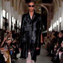 Helmut Lang – Peter Do revelou sua segunda coleção para Lang, apostando ainda mais na sua alfaiataria elegante. Um vestido trapézio de lã chegou com bainha dupla – com forro de seda mais leve e aparecendo – e foi usado sobre calças retas, enquanto outro tabbarde de corte reto em lã cinza foi misturado com calças justas de PVC brilhante.
