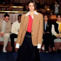 Tommy Hilfiger – A coleção dobrou a aposta no guarda-roupa formal essencial que a marca praticamente inventou, mas com um toque chique de Manhattan. A essência da coleção era o clássico formal americano. Pense em calças resistentes e suéteres de malha de pelúcia, blazers de lã feltrada e lenços canelados listrados, saias plissadas e camisas de botão, tudo nas cores escolares da Ivy League: bordô, marinho, camelo e marfim. Proporções superdimensionadas, casacos generosos sobre calças largas que se amontoavam nos tornozelos; camisas com punhos alongados e golas pontiagudas exageradas. O desfile foi no conceito “see now buy now”. A camisa de rugby chegou superdimensionada com uma gola alongada, mais elegante, usada sob um blazer desleixado e uma saia abaixo do joelho. A jaqueta do time do colégio também era grande demais, deslizando para fora do ombro. Ao retornar às suas raízes, tanto física quanto metaforicamente, Hilfiger tornou as roupas de preparação legais em Nova York.