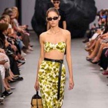 Depois da chuva que caiu sobre seu desfile no ano passado, o designer Michael Kors e sua equipe criaram uma passarela única em um espaço bruto cavernoso em um edifício no centro da cidade, semelhantes às praias rochosas da Costa Amalfitana. “Este é meu 35º aniversário de trabalho com artesãos italianos e eu realmente queria destacar todos os alfaiates e artesãos incríveis da Itália.” O resultado foi um show que usou iluminação forte e uma trilha sonora instrumental assombrosa para criar o clima de muito preto e branco e cores suaves, com looks que evocam o estilo híbrido da série da NetFlix, Ripley, dos anos 1950, de roupas urbanas e de resort. “Há muita textura, ráfia preta, bordados brancos. Tudo é muito tátil”, explicou Kors. “São todas as cores que você encontraria no Mediterrâneo. Então, todas as cores naturais têm marrons e cremes muito suaves. E então, é claro, haverá o azul.”