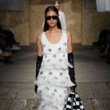 ROBERTO CAVALLI O diretor-criativo Fausto Puglisi recriou versões têxteis do mármore italiano com todas as técnicas imagináveis para sua coleção Roberto Cavalli. A silhueta urbana rock 'n' roll incluiu longos vestidos de palco esvoaçantes, looks baby-doll sensuais, enquanto minissaias urbanas chiques e combinações de jaquetas e trench coats brilhantes falavam da vida na cidade. Uma série de lindos vestidos de veludo com fendas sensuais, recortes e capas embutidas encerrou o show. "Neste momento, precisamos de um pouco de elegância. Quero trazer algo forte, resistente, mas elegante ao mesmo tempo", disse Puglisi.
