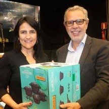Leonardo Moisés entrega adega Suggar e caixa de vinhos Menin Douro Estates para Riva Moreira
