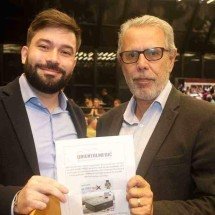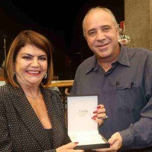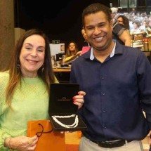 Andréa Bernardes entrega joia da Manoel Bernardes para Denilson Rodrigues