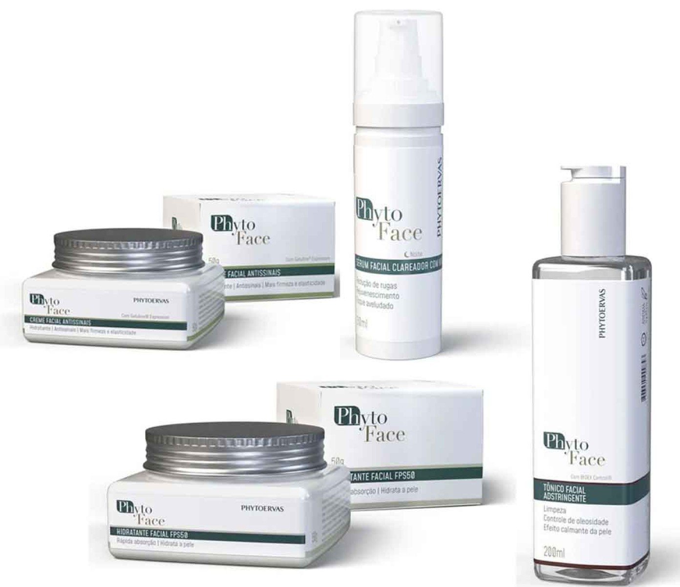 Quando se fala em saúde e beleza, é inevitável mencionar a pele e a passagem do tempo. É a partir dos 25 anos que se começa a perder colágeno, a substância responsável pela sustentação de tecidos no corpo. Isso significa que é nesse período, ou antes mesmo dele, que devemos iniciar os cuidados de pele para manter a aparência jovem e saudável em dia. Mas nem sempre utilizar química ou procedimentos estéticos é necessário. A marca de produtos veganos e naturais Phytoervas criou uma linha completa para os cuidados diários do rosto, contemplando: sabonete facial, sérum, esfoliante, água micelar, tônico e hidratante com proteção solar FPS50. Creme Facial Antissinais, Serum Facial Clareador, Hidratante com proteção solar 50 FPS e Tônico Adstringente.