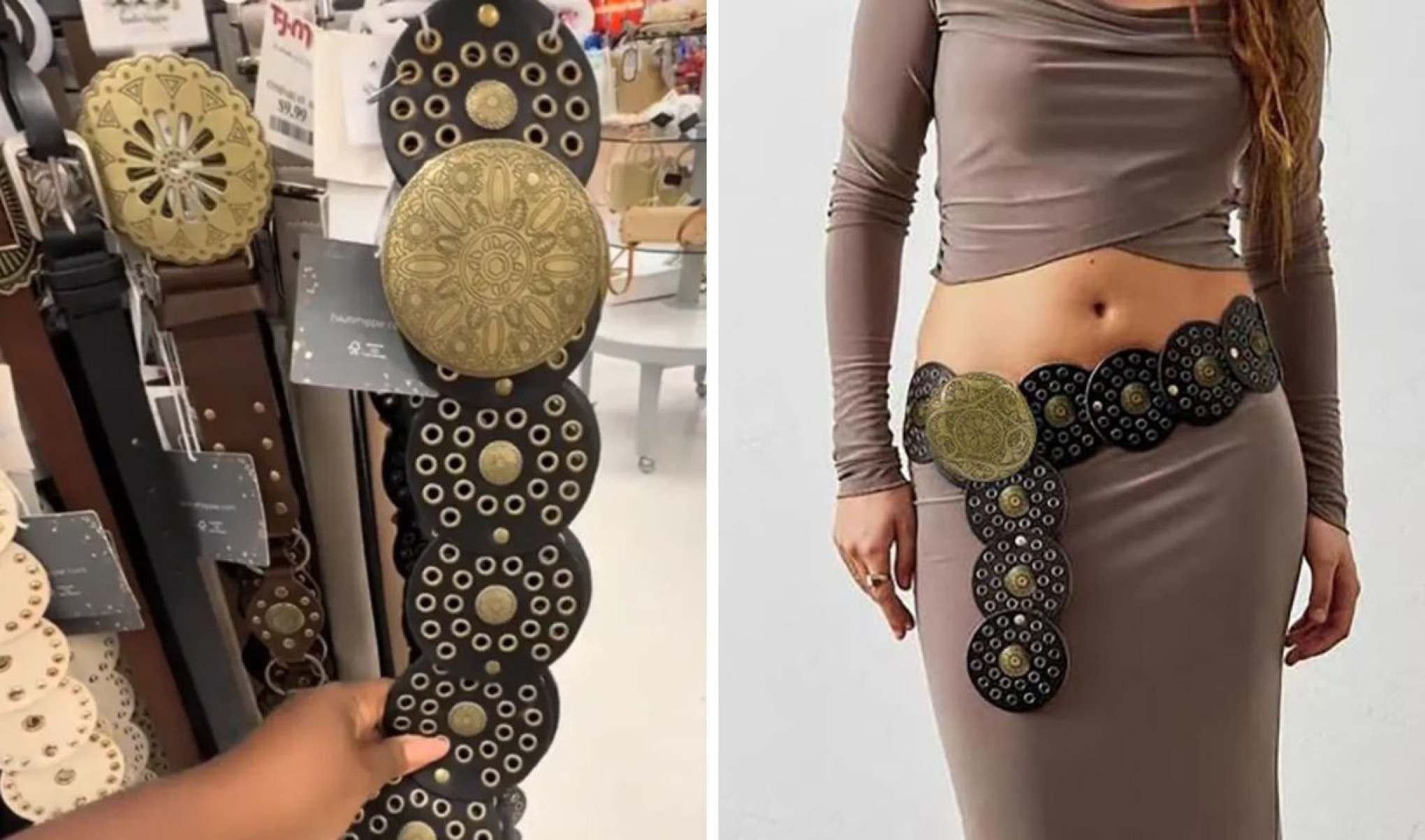 A criadora de conteúdo Nina Dixon viralizou ao registrar a filha adolescente escolhendo um desses cintos. A reação? Puro horror fashion.
