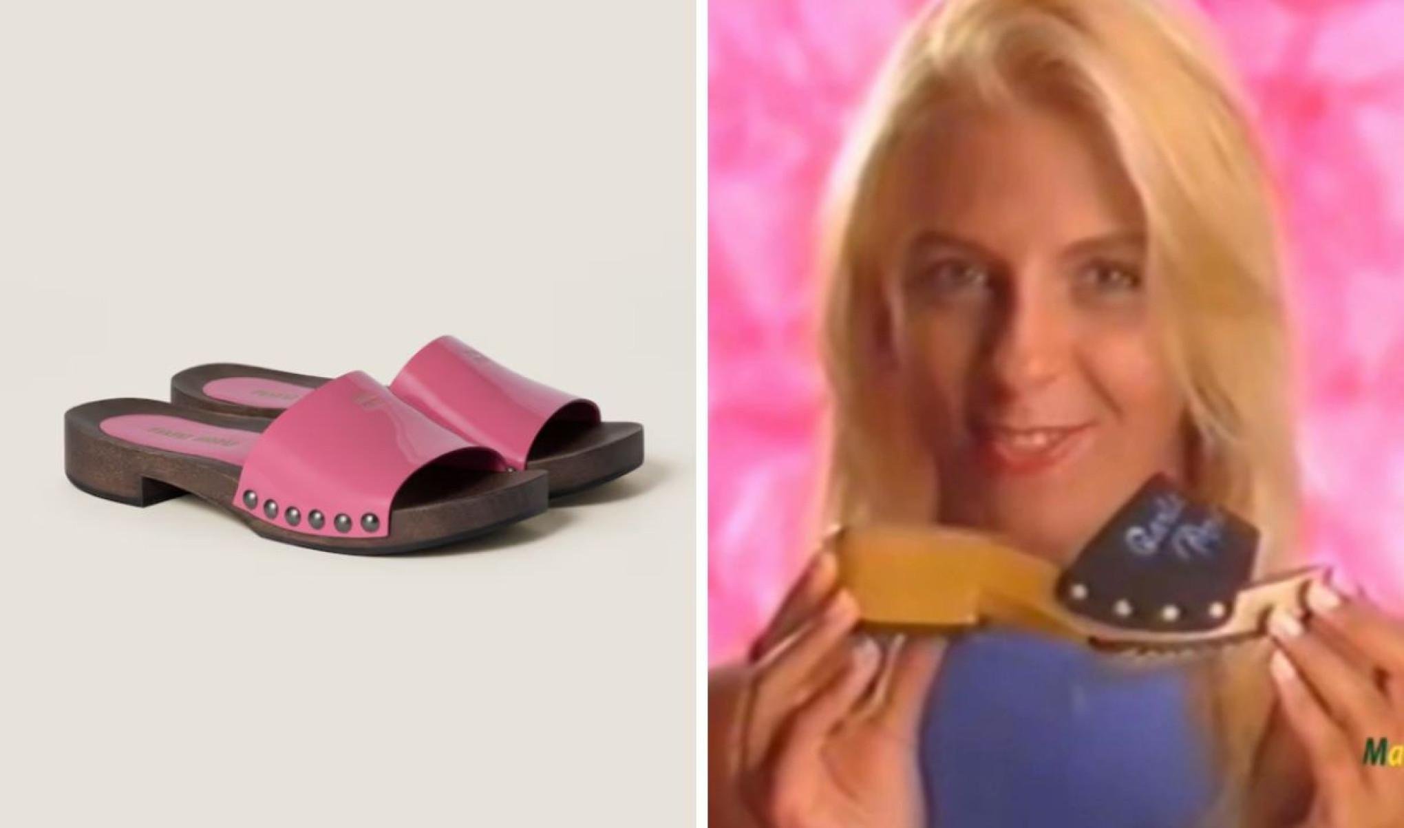 A Miu Miu é hoje uma das principais grifes da moda mundial. Mas ela se tornou assunto por causa de uma coincidência: um tamanco que lembra a sandália da dançarina Carla Perez. Os dois calçados são feitos de madeira, com tira em couro e tem tachinhas. No entanto, o preço da Miu Miu é diferenciado: no site oficial, ele custa R$ 5.800.