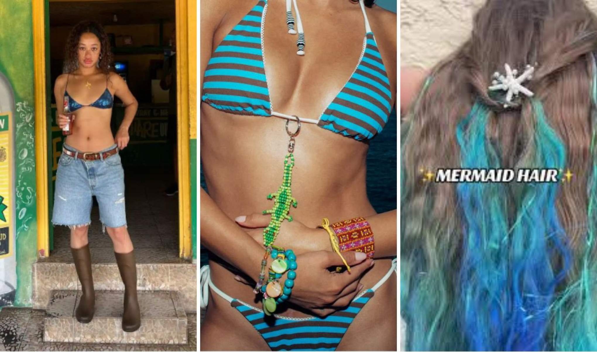 Os acessórios praianos aparecem com vontade, como colares de conchas, bolsas de palha, chapéus de crochê e chinelos clássicos, como as Havaianas. Para fechar o visual, a beleza glow. Pele hidratada e iluminada, ondas de praia ou tranças despojadas, e produtos de destaque como óleos corporais, sprays faciais e protetor solar de alta qualidade foram destaques no hemisfério norte.