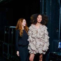 Cássio Vital não escondeu a emoção de desenhar um vestido em memória de Edna Thibau. Os dois trabalharam juntos por mais de 40 anos na Alphorria. “Quis usar a cor que ela mais gostava e a silhueta que ela mais amava. Então, fiz um sereia preto.” O estilista ainda resgatou uma textura criada para um desfile do São Paulo Fashion Week de tule recoberto com fitas de cetim plissadas. “Senti a presença dela o tempo todo. Ainda sinto, sabe?”