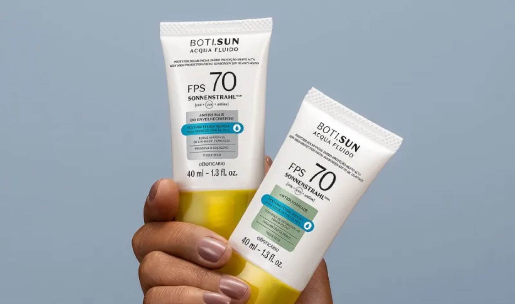 Disponível em oito cores, o filtro oferece proteção diária contra raios UVB, UVA e luz azul, com textura fluida, cobertura leve e efeito uniformizador da pele. O Boti.Sun já contava com uma versão sem cor do protetor, com o mesmo FPS.
