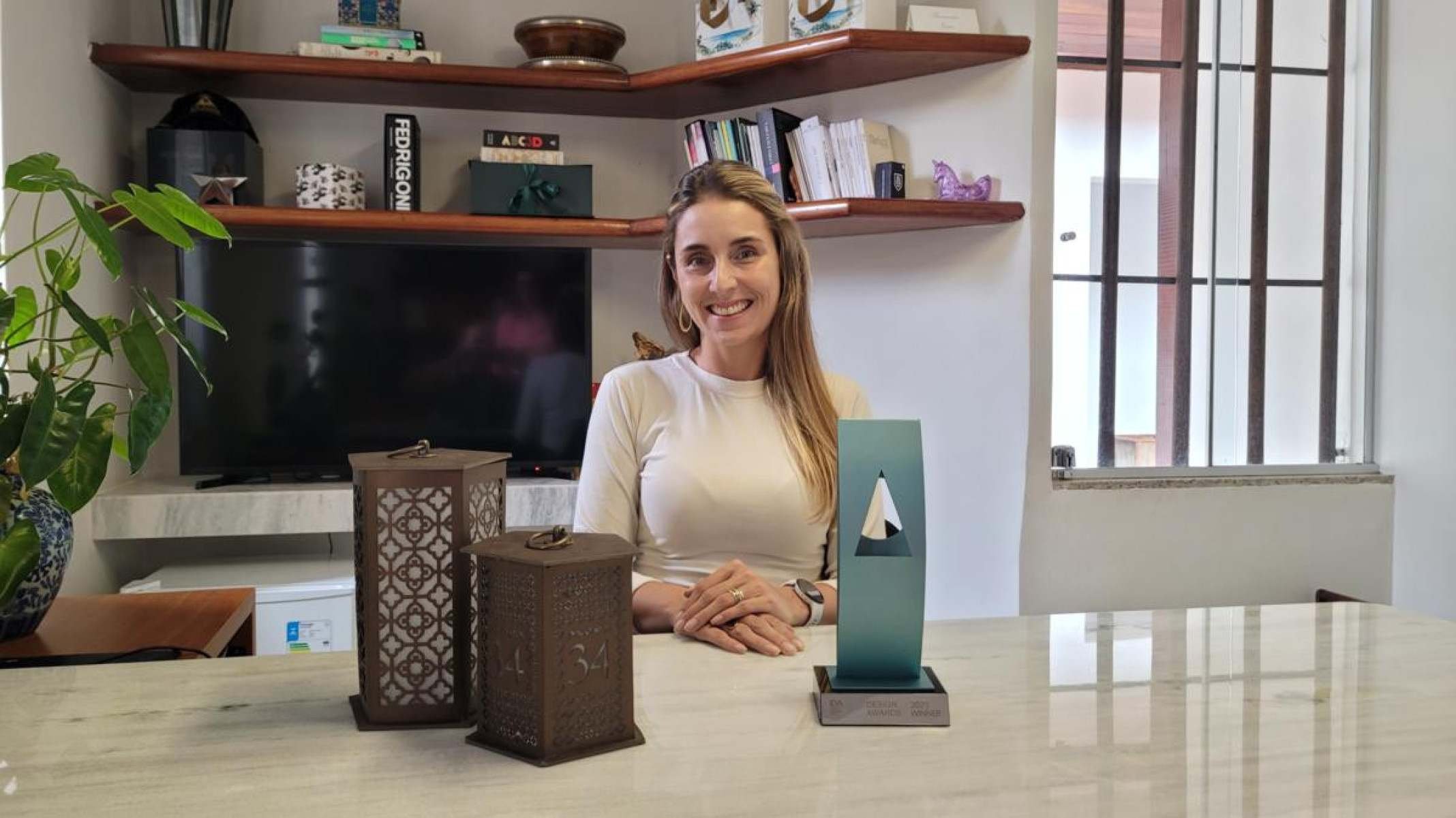 Raquel vive e respira design e, como toda boa profissional, acompanha e segue os melhores do mundo em sua área. Qual não foi sua surpresa quando, na cerimônia de premiação, recebeu o prêmio das mãos do renomado arquiteto e designer italiano Freddy Curiél, de quem é grande admiradora, fundador da Lapis Bureau, um estúdio de design multidisciplinar conhecido por seu contexto voltado para a pesquisa.