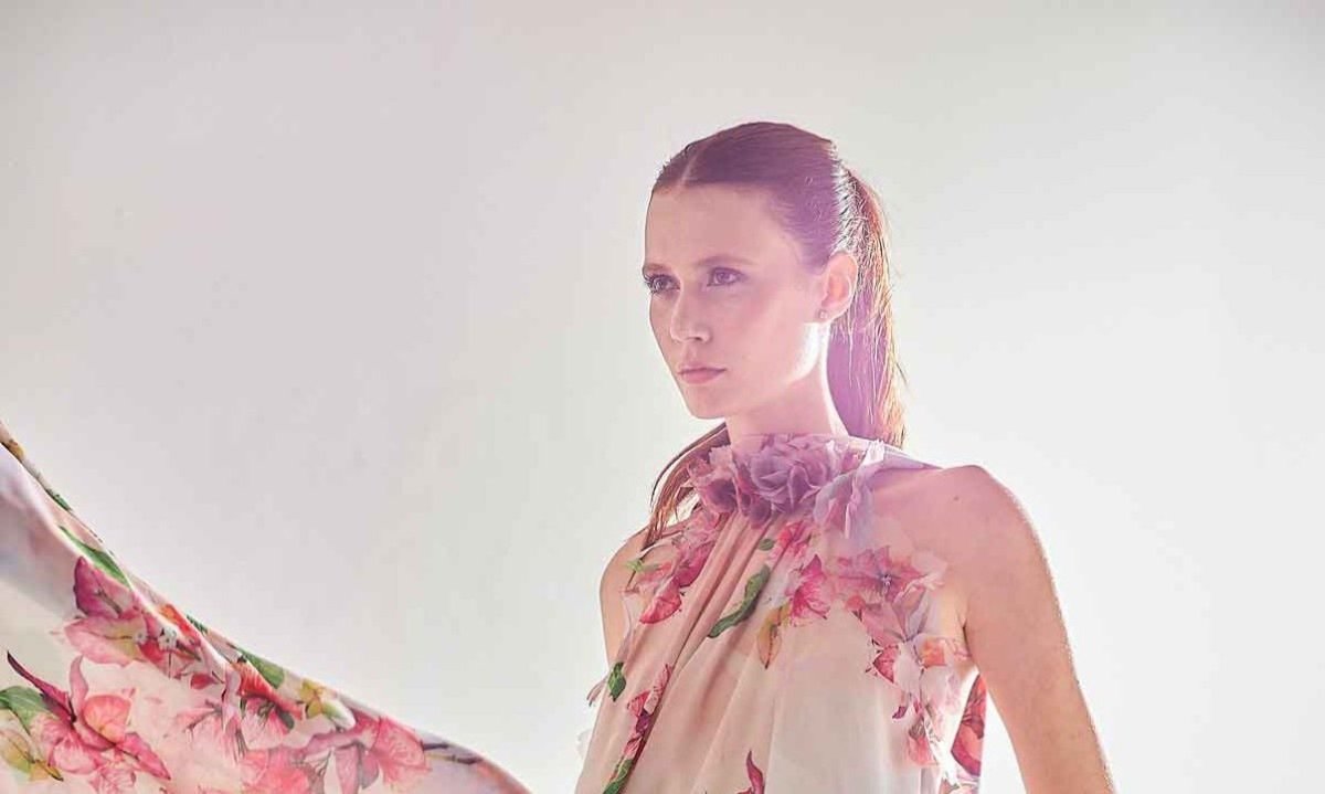 Uma estampa degradê exclusiva que une o verde, o roxo e o branco aparece em diversos looks, em tecido acetinado e em tule. Esses looks se destacam em meio a peças casuais e de moda festa – que aqui aposta em pouco bordado e mais trabalho de movimento nos tecidos.