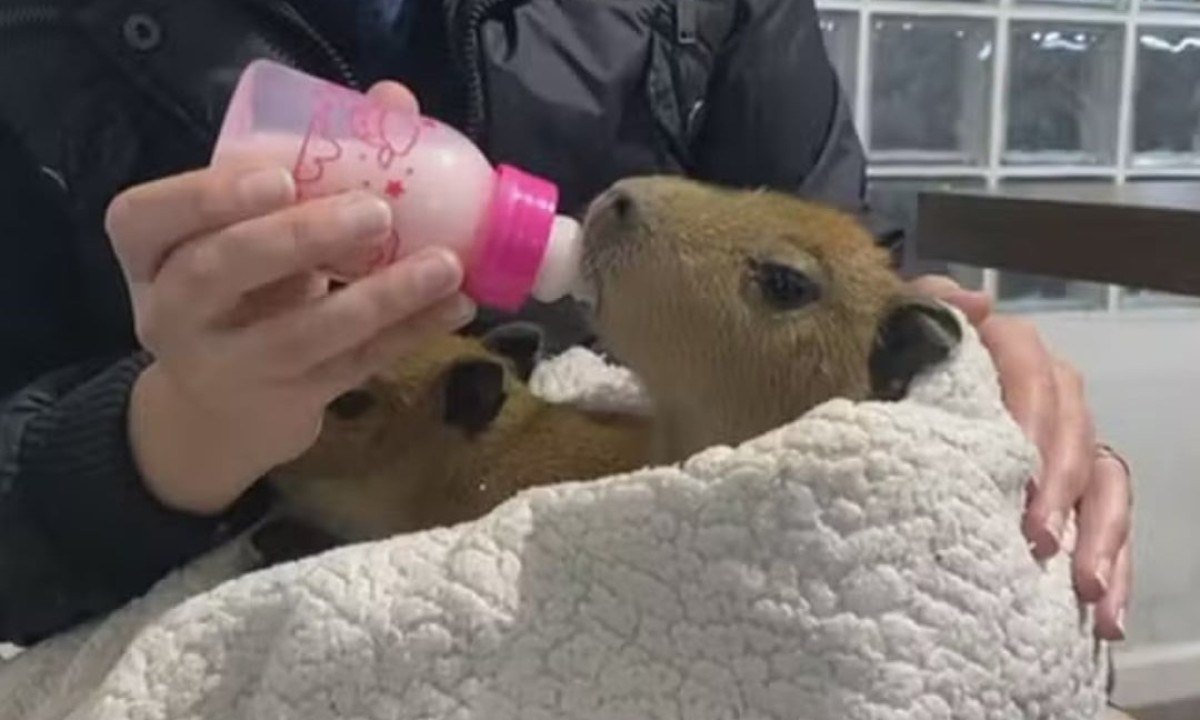 Após tragédia na Via Dutra, filhotes de capivara são resgatados e usam mamadeira