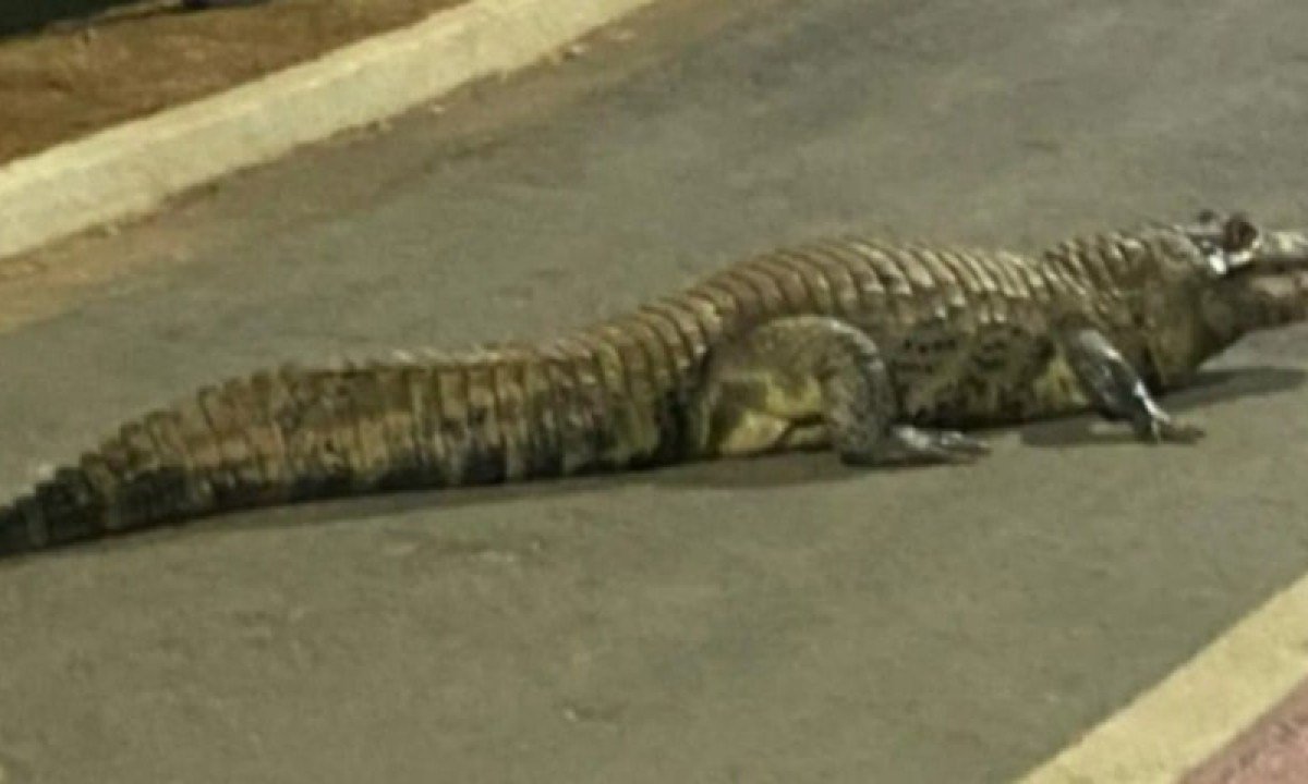 Rolê assustador! Jacaré toma conta de pista de caminhada em Parque das Águas