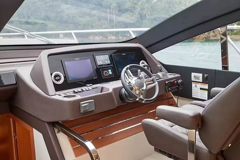 Trata-se de uma Schaefer 660, avaliada em cerca de R$ 20 milhões. O modelo se destaca pelo luxo e inovação, com suíte master, camarotes de hóspedes e ampla área de lazer, além de plataformas laterais que ampliam a popa, aproximando-a de embarcações de maior porte. Foto: Divulgação/Schaefer Yachts -