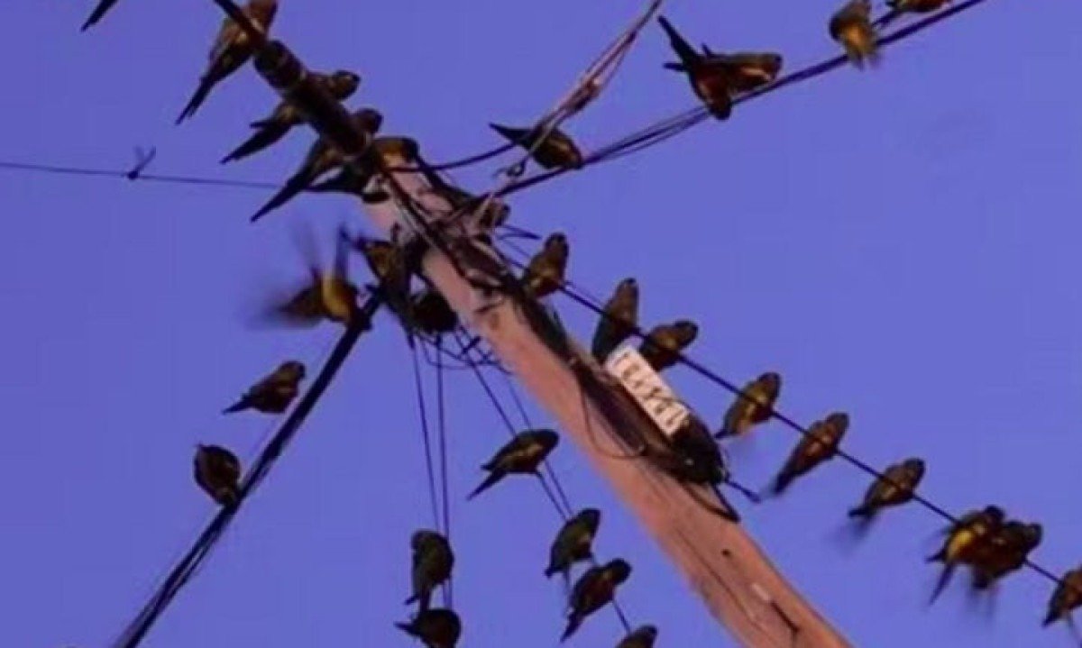 Para quem está na cidade, é comum avistar centenas de papagaios pousados sobre cabos elétricos, postes e sobrevoando os céus ao entardecer. Foto: reprodução de vídeo -