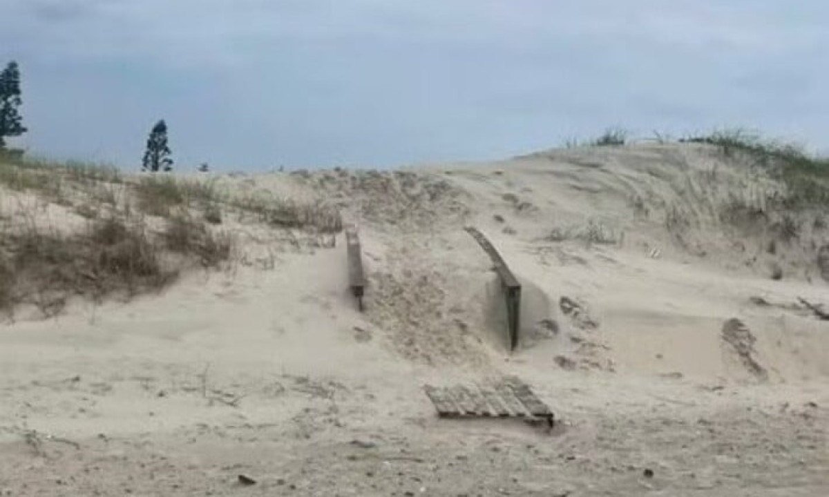Dunas cobrem casas e ruas no litoral do RS e dificultam acesso à praia