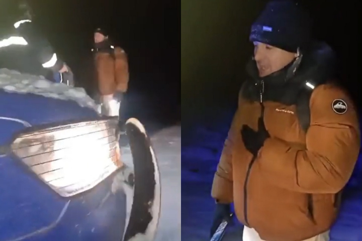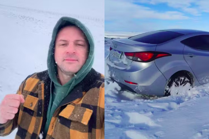 "Em uma curva, o carro bateu em uma duna de neve que não dava para distinguir claramente por causa do vento branco. Tudo estava branco, não dava para distinguir o que era estrada e o que não era", explicou. Foto: Reprodução -