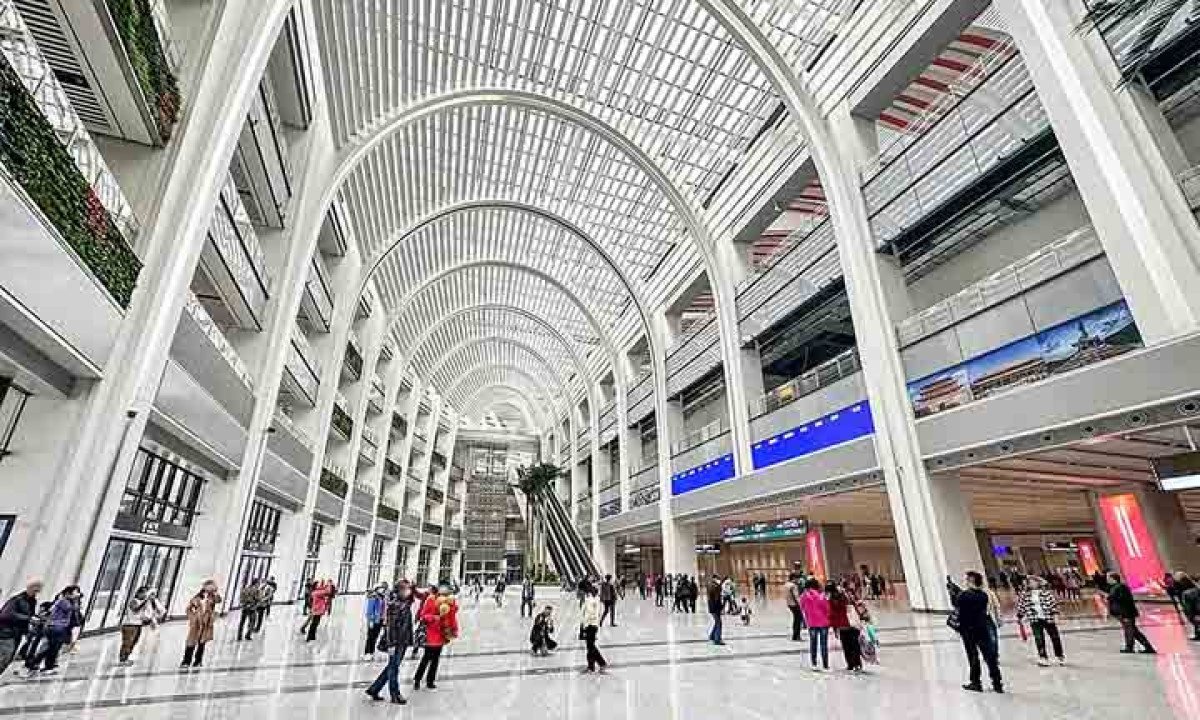 3º) Estação Baiyun, em Cantão (China): Essa estação é parte de um impressionante complexo subterrâneo que gerencia 24 linhas de trem de alta velocidade, seis de metrô e três terminais de ônibus. Foto: Tim Wu/Wikimédia Commons -