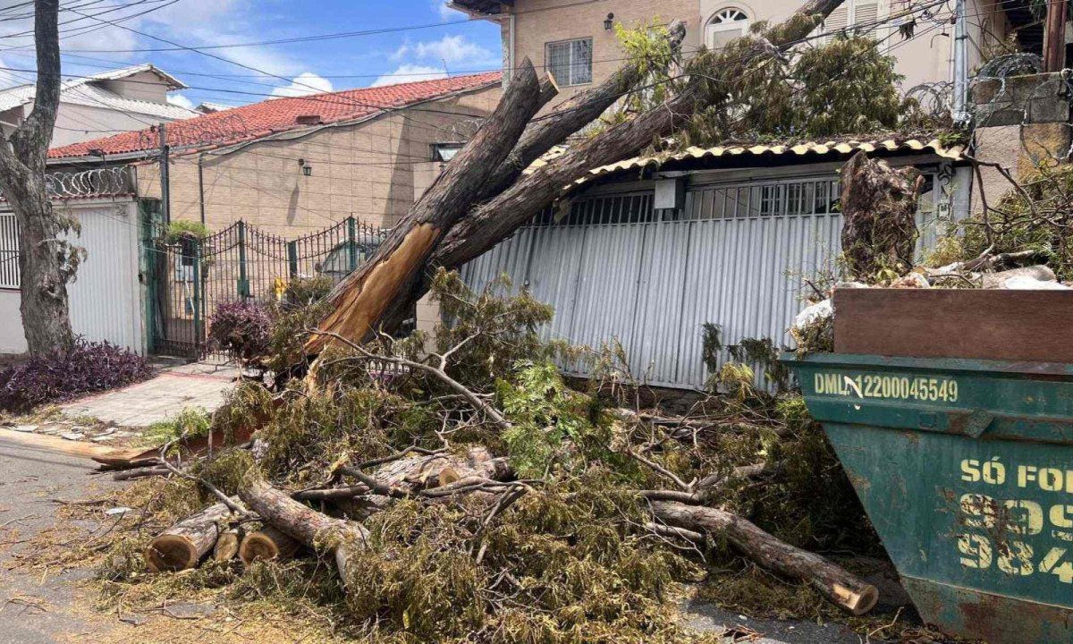 Árvores caem na Rua Deputado Wilson Tanure, no Bairro Santa Amélia, na Região Pampulha, em BH Foto: Edésio Ferreira/EM/DA Press -