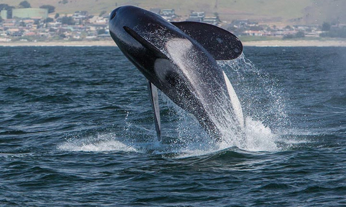 Eles conseguiram documentar a matriarca, batizada de Dakota, matando um golfinho e deixando partes do animal para o grupo. Como as orcas fazem parte da família dos golfinhos, os cientistas divulgaram o flagrante e destacaram que ainda não sabiam que elas faziam esse tipo de alimentação. Foto: Divulgação Luis Aguillar -