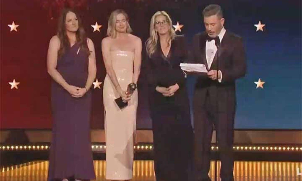 Em seu discurso, Kimmel destacou a relevância desse apoio coletivo e ressaltou a responsabilidade da classe artística diante de tentativas de censura. Em tom firme, agradeceu aos que se mobilizaram em solidariedade ao programa. Foto: Reprodução do X @Variety -