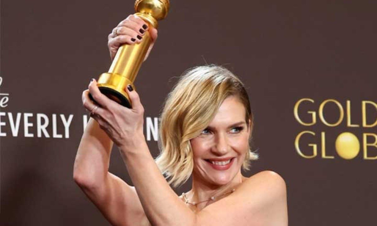 A premiação foi entregue durante a cerimônia do Golden Globe Awards 2026, realizada em Los Angeles, e representou a primeira vitória da atriz no evento, após anos sendo lembrada e elogiada por atuações anteriores. Foto: Divulgação -