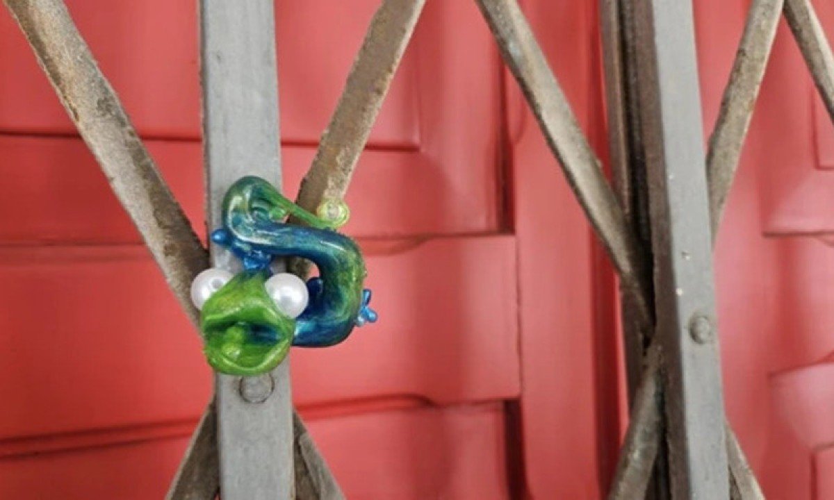 Feitas com moldes de silicone e materiais variados, como resina e plástico reciclado, apresenta cores e texturas diferentes. Fixadas com ímãs em muros e postes, podiam ser retiradas por quem as encontrasse. Todas possuiam QR code direcionando ao perfil do projeto no Instagram. Foto: Divulgação/Rodrigo Stingnel -