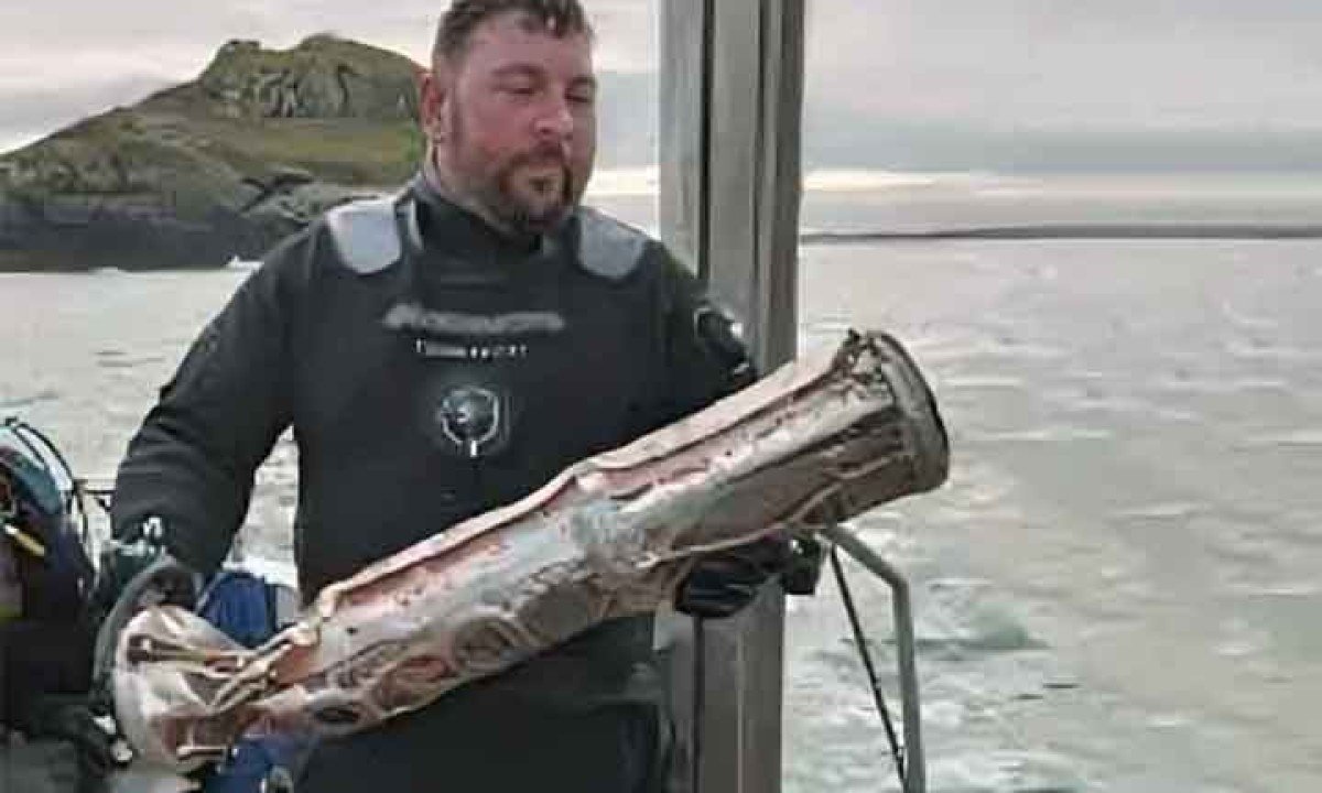 Segundo o jornal galês "Herald", o grupo de mergulhadores entregou o objeto às autoridades competentes para avaliação. Foto: Reprodução do Youtube -