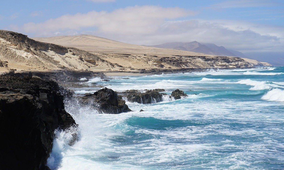 A Ilha de Fuerteventura, com 210 km de uma ponta à outra, tem mais de 150 praias e é muito procurada por praticantes de mergulho e windsurfe.
